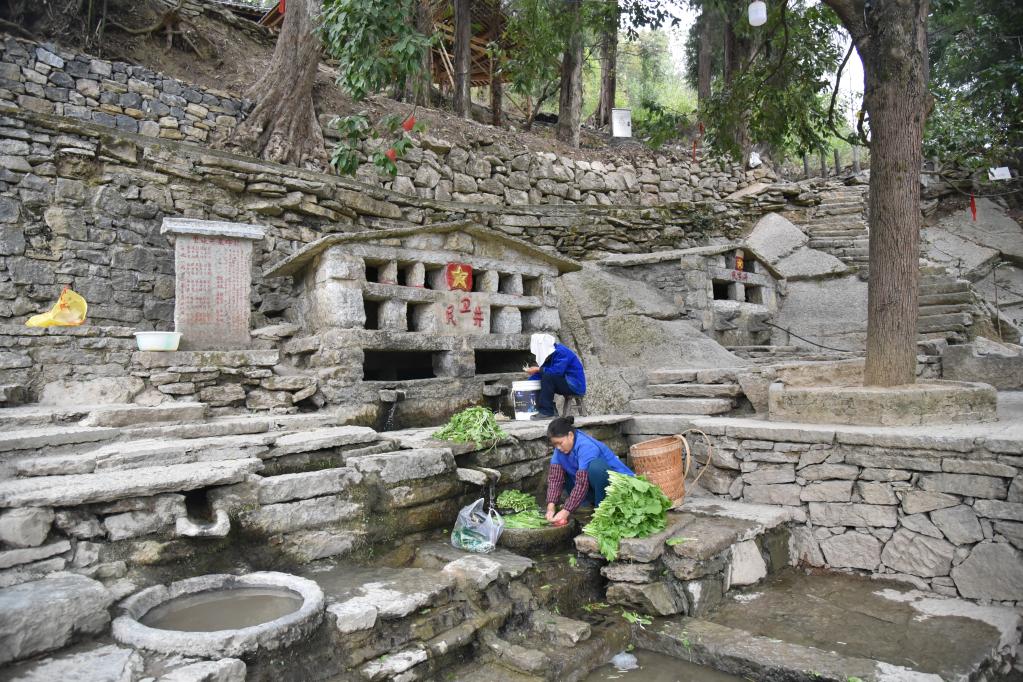焕河村村口的老水井边,村民在洗菜。新华社记者骆飞 摄