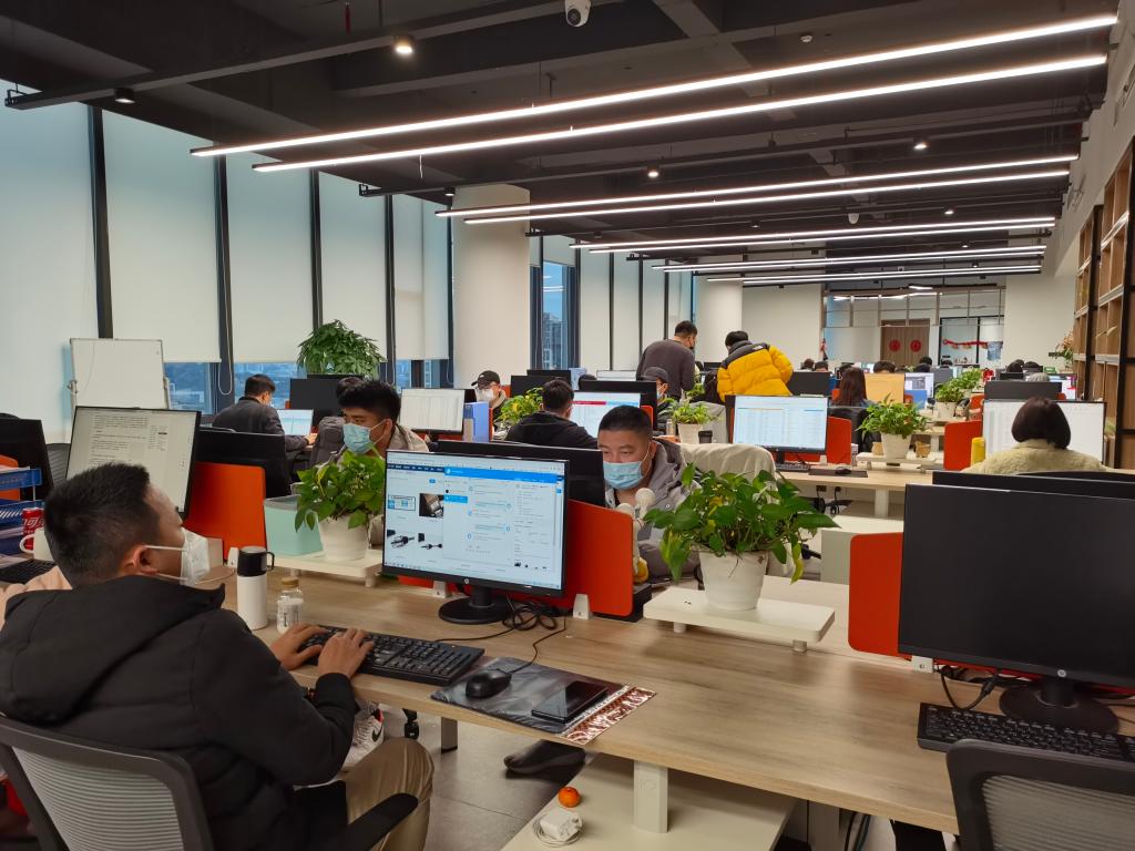 临近春节福建扬腾创新信息科技有限公司员工仍在紧张工作。新华社记者秦宏 摄