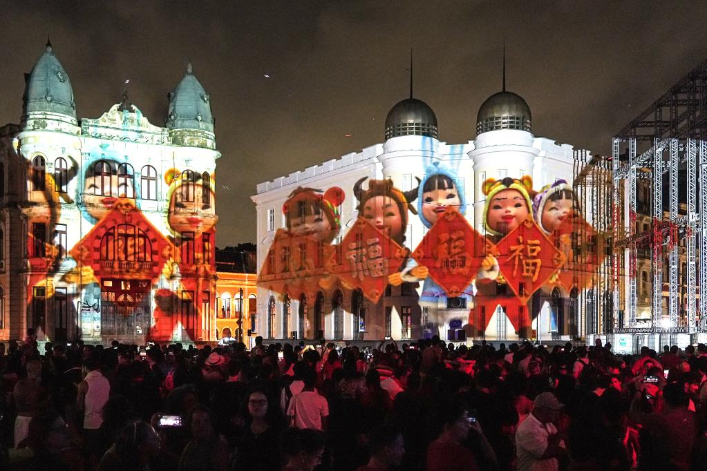 巴西东北部城市累西腓1月19日晚举行中国春节庆祝活动,通过中巴歌舞、舞狮表演、灯光秀等精彩节目喜迎兔年新春。2022年,累西腓市通过法案,将中国春节设立为该市的官方节日。