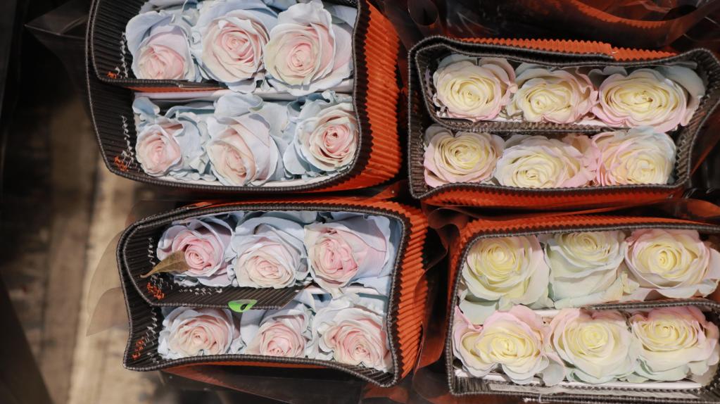 这是1月17日在广州岭南花卉市场拍摄的来自厄瓜多尔的玫瑰花。