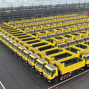 上汽红岩生产的一批车辆正整装待发,准备出口至国外市场。(受访者供图)