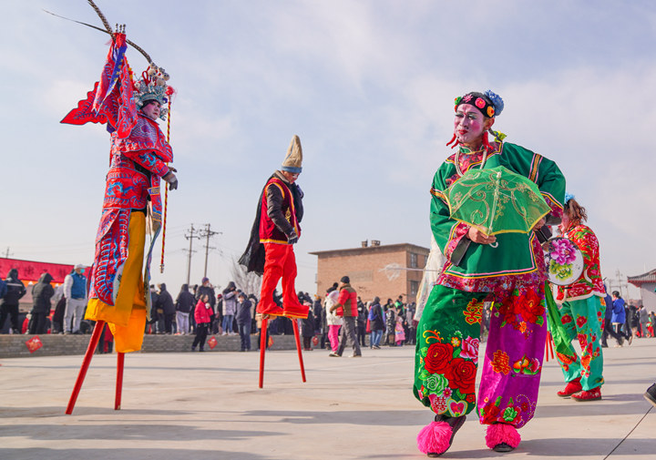 1月25日,民间艺人在河北省张家口市蔚县蔚州古城进行社火表演。新华社记者 范世辉 摄