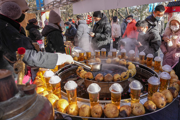 1月25日,游客在济南千佛山新春游园会上选购美食。新华社记者 朱峥 摄