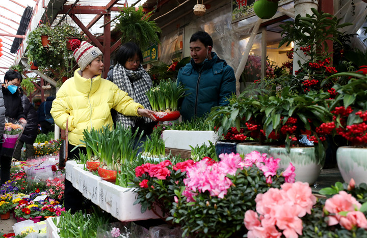 1月18日,市民在上海徐汇区的一家花卉市场内选购年宵花卉。新华社记者 方喆 摄