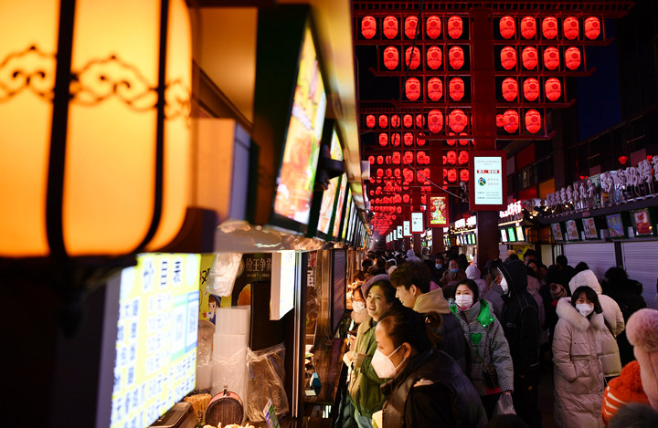 1月24日,消费者在宁夏银川市西夏区怀远夜市选购美食。新华社记者 王鹏 摄