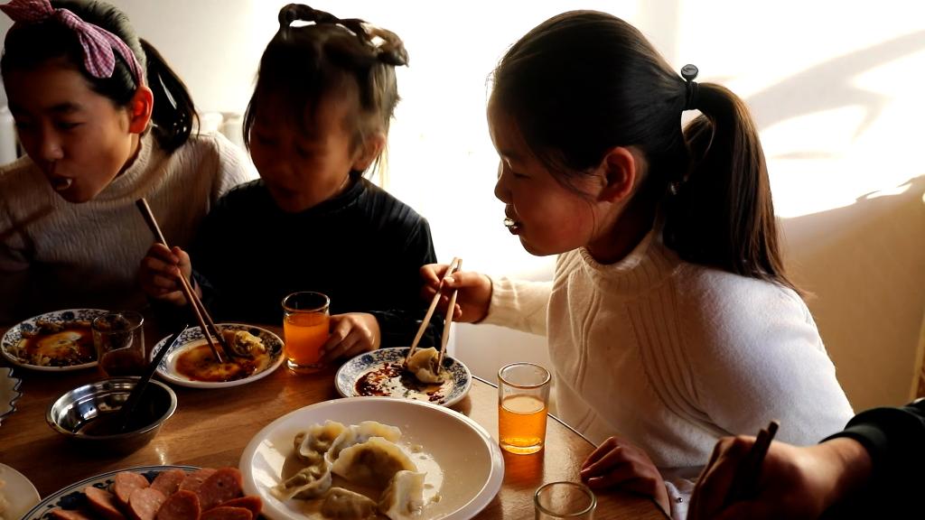 农历正月初五,俗称“破五”。在北方,“破五”要吃饺子。初五一大早,辽宁省盘锦市盘山县新村村的洪家老两口就忙碌起来。男主人洪伟捞出自家腌的酸菜,女主人许亚珍也在厨房忙着做馅,一家人包起了饺子。