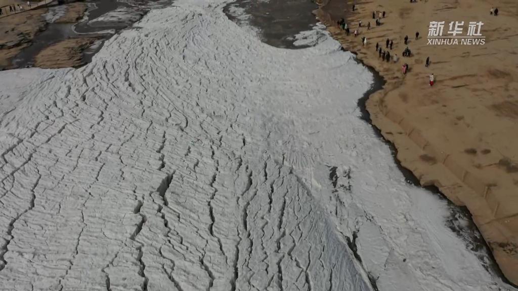 近日,受寒潮天气影响,黄河晋陕峡谷流凌密度持续增大,大量的冰凌顺流而下,在壶口瀑布下游河槽堆积,使得往日奔腾汹涌的瀑布基本被冰凌填平,河道的冰凌与河岸齐平,壶口段封河长度已超过十五公里。