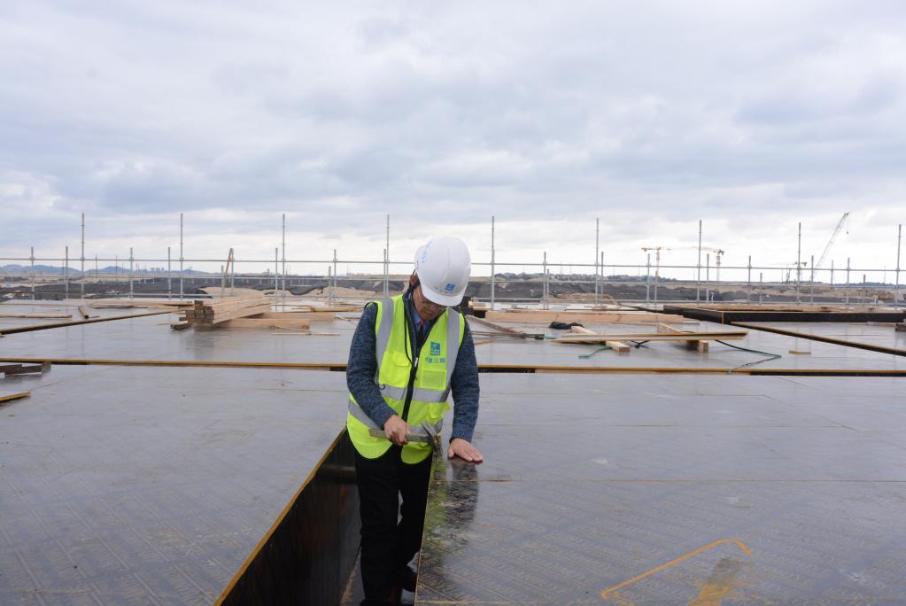 早上七点,项目安全员黄田就开始带着同事仔细检查施工现场的各个角落。他和同事负责航站楼D、E指廊的安全监督工作,几趟走下来,每天的微信步数超过了2.5万步。
