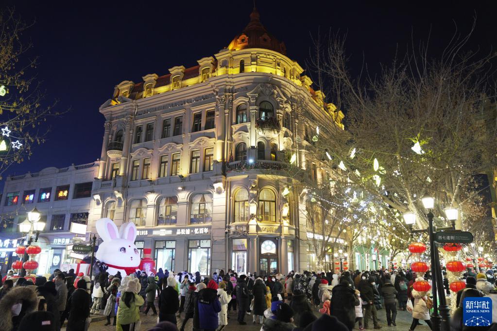 1月25日,游客在哈尔滨中央大街游玩。