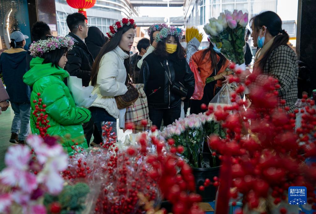 当日是大年初六,位于云南省昆明市的斗南花市内人头攒动,人们逛花市、买鲜花,欢度假期。