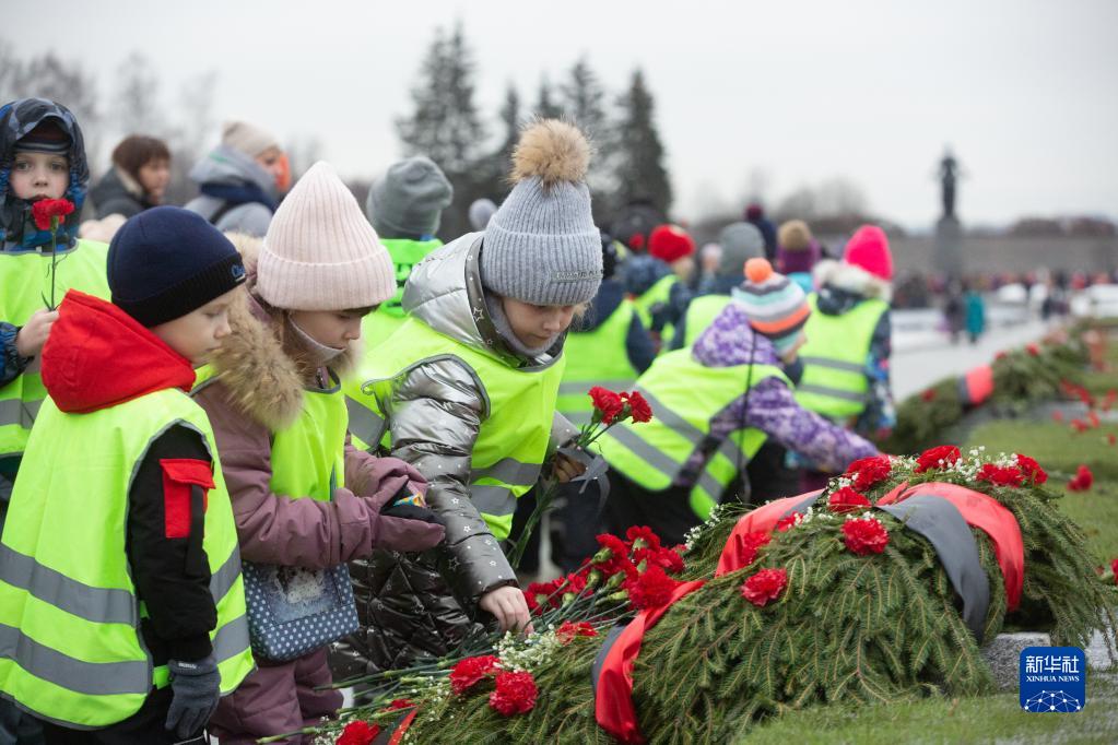 1月27日,孩子们在俄罗斯圣彼得堡举行的纪念活动上献花。