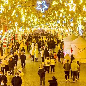 春节期间,哈尔滨中央大街上游人如织。(傅强摄)
