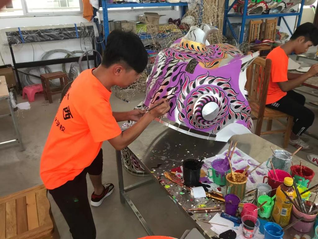 藤县狮王文化传播有限公司不仅派出教练全程负责舞狮班学生的专业课程,还出资建设龙狮扎作艺术馆,传授龙狮扎作技艺。