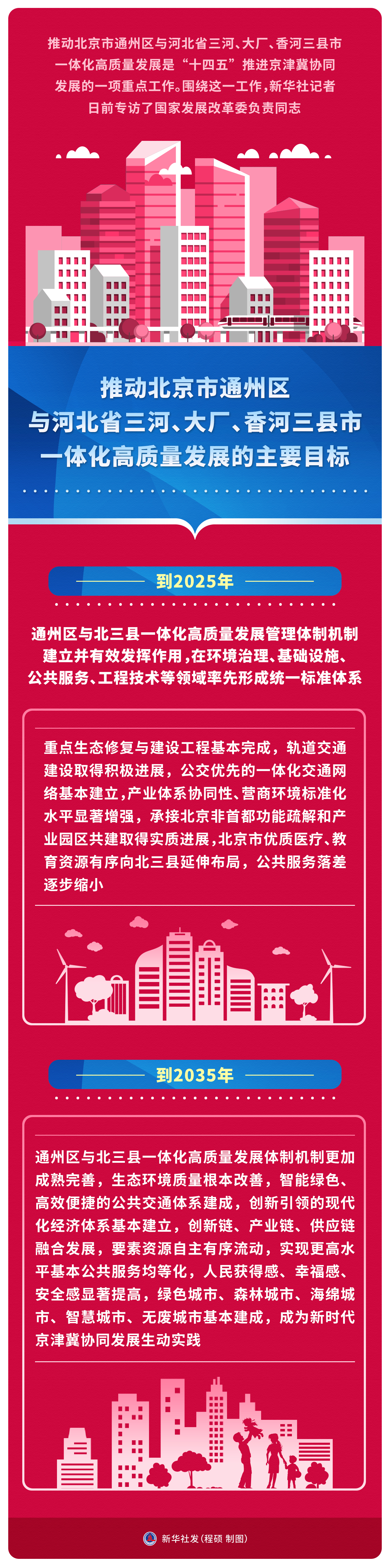 推动北京市通州区与河北省三河、大厂、香河三县市一体化高质量发展是“十四五”推进京津冀协同发展的一项重点工作。围绕这一工作,新华社记者日前专访了国家发展改革委负责同志。
