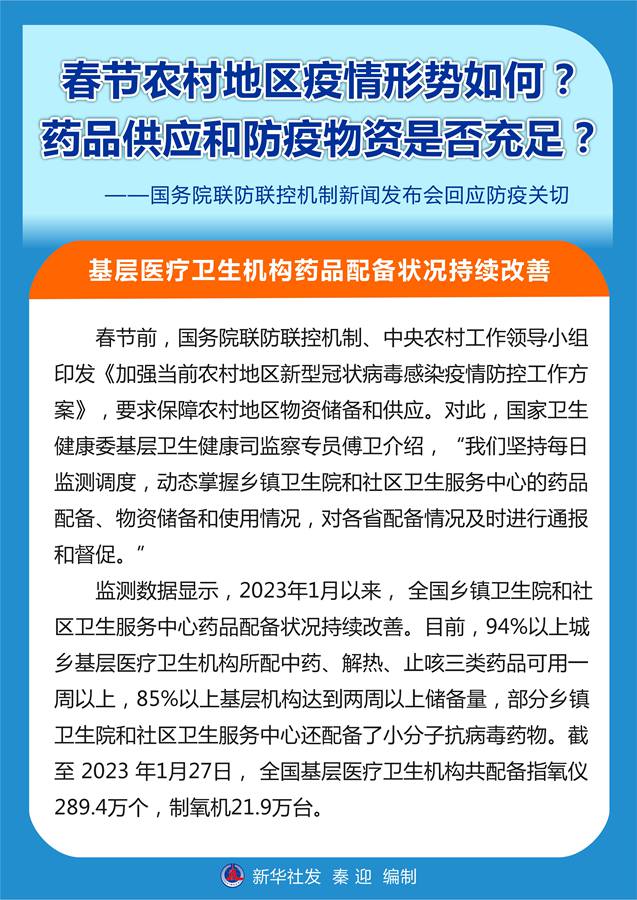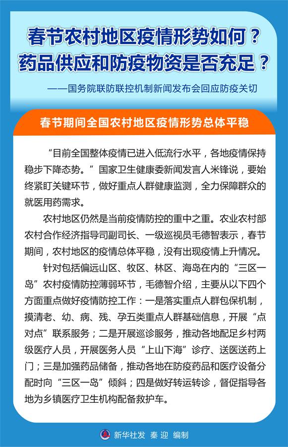 新华社北京1月30日电 题:春节农村地区疫情形势如何?药品供应和防疫物资是否充足?——国务院联防联控机制新闻发布会回应防疫关切
