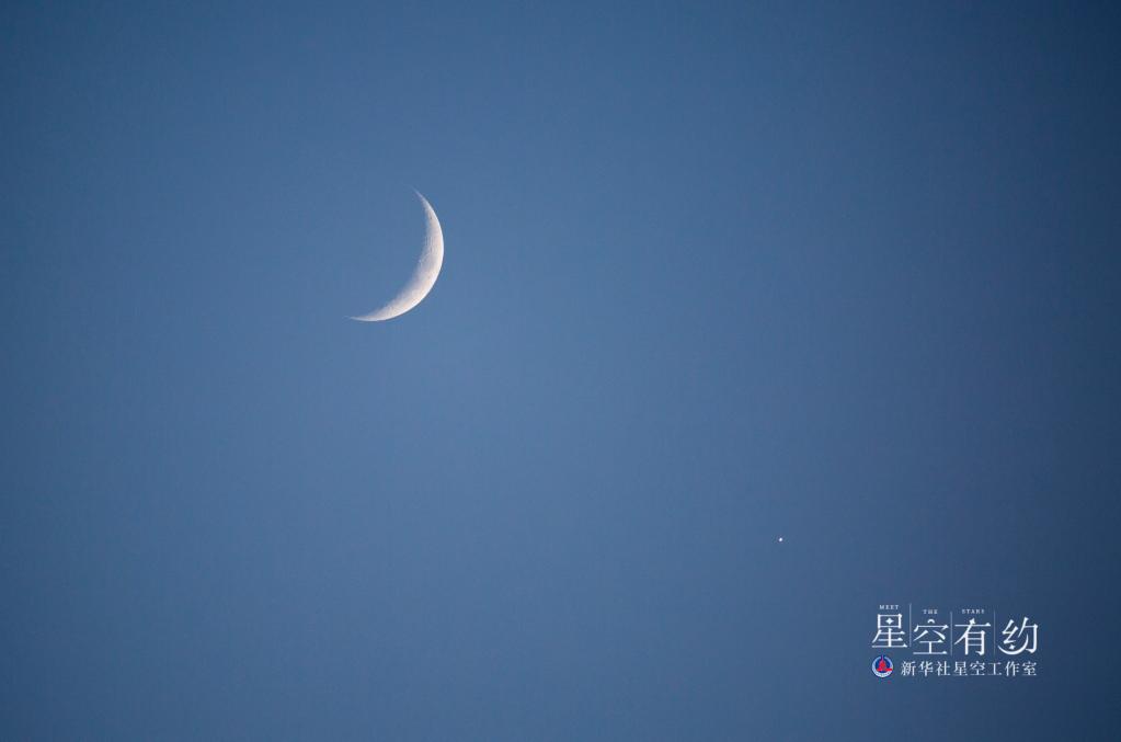 2021年11月8日傍晚在江西省九江市都昌县拍摄的金星合月。新华社发(傅建斌摄)