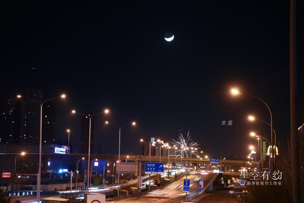 天津市天文爱好者杨婧2023年1月26日傍晚在天津市河西区拍摄的木星伴月。(本人供图)