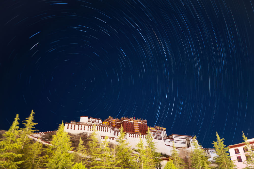 ↑2022年5月4日在布达拉宫前拍摄的星轨。