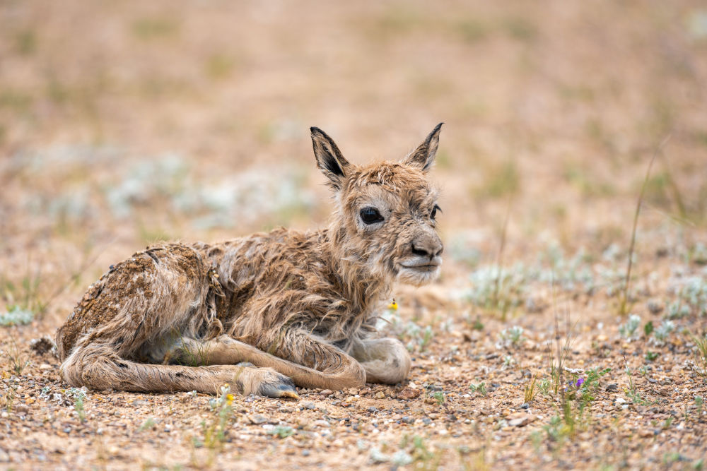 ↑2022年7月11日在羌塘国家级自然保护区拍摄的刚出生的藏羚羊幼崽。
