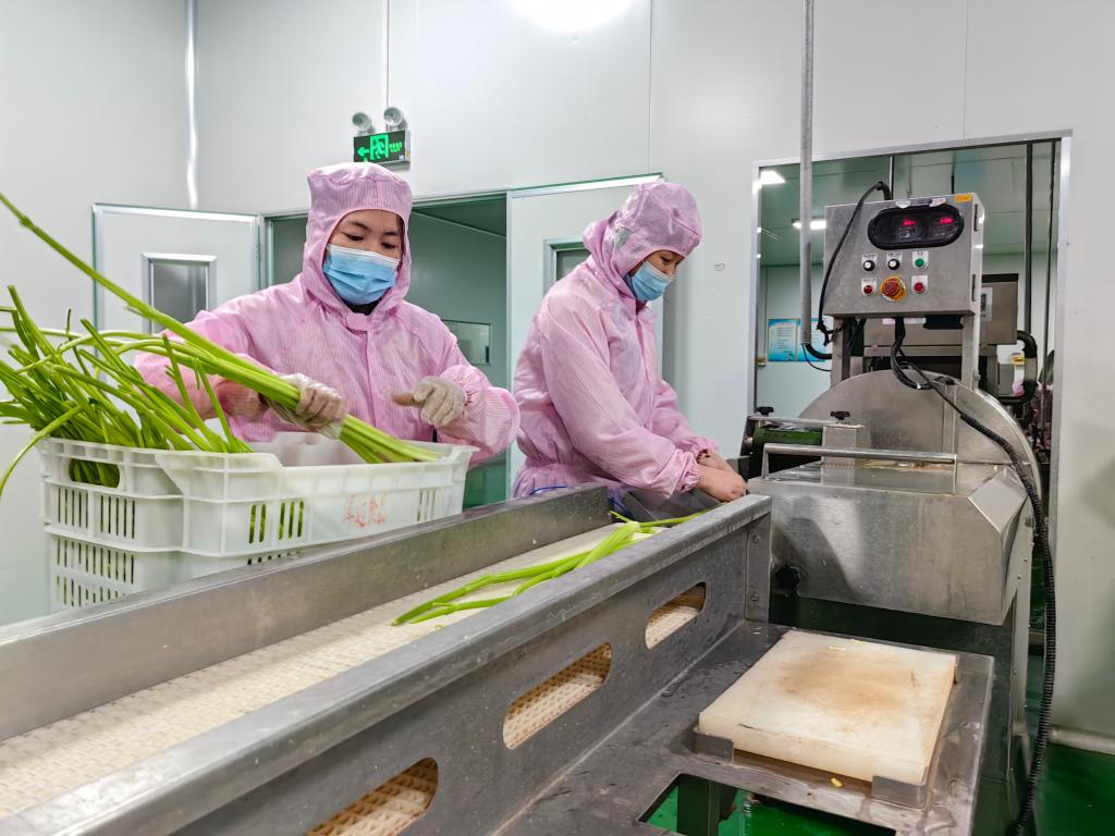 走进泽远的生产车间,记者看到,自动化生产线高速运转,一根根芹菜经过清洗、切段、传送,进入包装箱。南小王村及周边村种植的辣椒、茄子、土豆、芸豆等蔬菜,经过半成品加工,就可以供应饭店、学校等单位。
