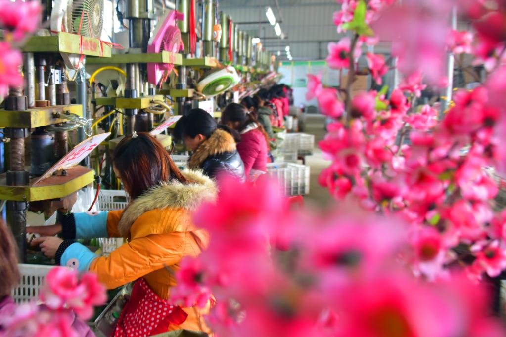 南阳市社旗县仿真花协会会长李富文介绍,从最初几家小作坊到聚集上百家企业,社旗仿真花产业去年年产值约3亿元,出口占比超过三分之一。今年招商引资项目陆续投产后,年产值有望突破10亿元。