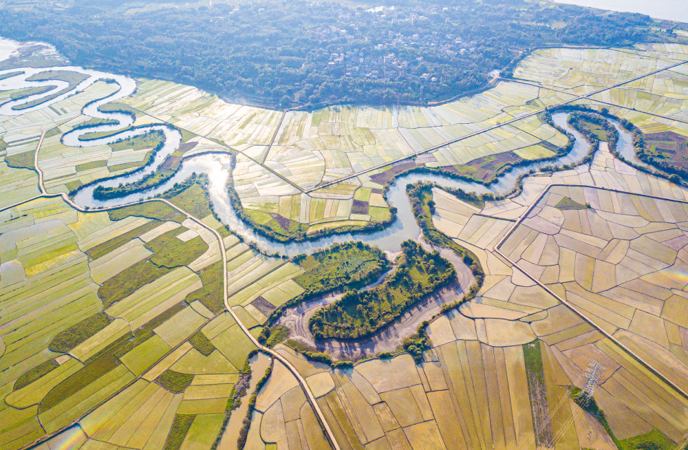 2023年1月30日拍摄的海口三十六曲溪省级湿地公园及周边的稻田。新华社记者 蒲晓旭 摄
