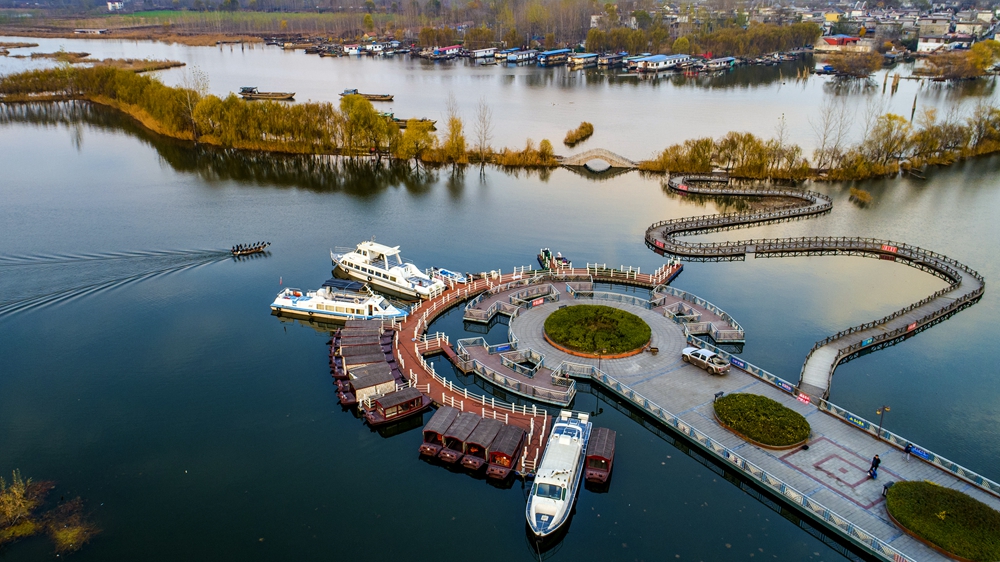山东省济宁市微山县二级坝湿地公园景色(2021年11月28日摄)。 新华社发(楚贵元 摄)