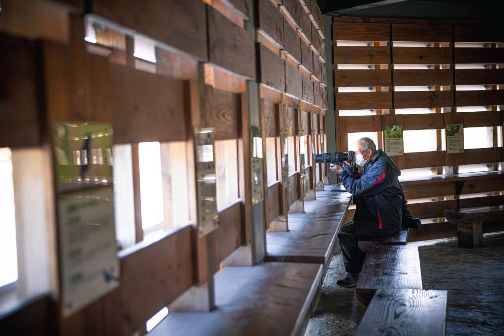 一位摄影爱好者在杭州西溪国家湿地公园莲花滩观鸟区拍摄鸟类。新华社记者 江汉 摄