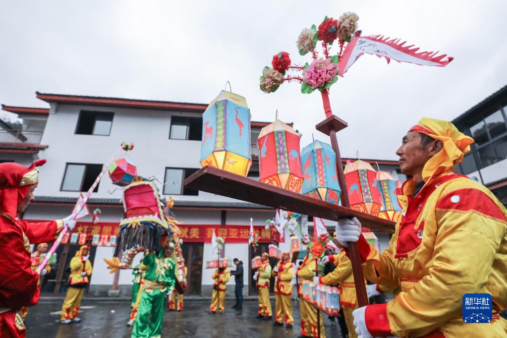 当日,浙江省杭州市淳安县里商乡举行2023元宵节花灯巡游,为当地山乡增添了热闹的元宵氛围。