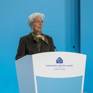 2月2日,在位于德国法兰克福的欧洲央行总部,欧洲中央银行行长拉加德在新闻发布会上讲话。新华社发(欧洲央行供图)