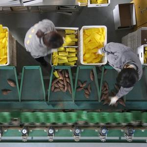 2月2日,工人在分拣红薯。