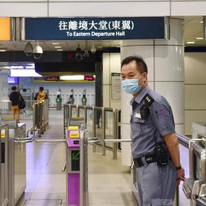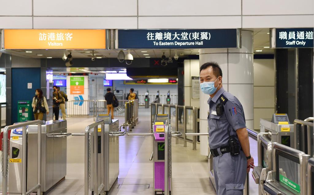 2月3日,一名工作人员在港铁东铁线罗湖站内值勤。香港与内地2月6日起全面通关。目前,港铁东铁线罗湖站已准备就绪重新投入服务。新华社记者 陈铎 摄