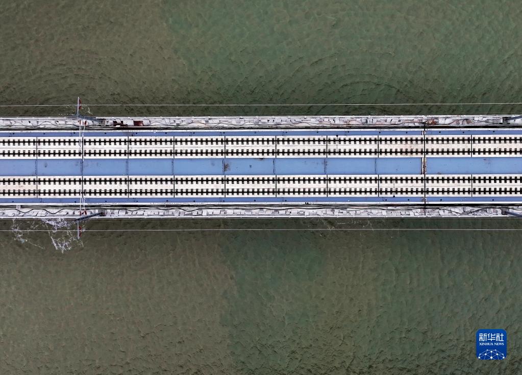 这是2月4日拍摄的新建福厦铁路泉州湾跨海大桥(无人机照片)。