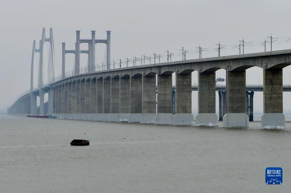 这是2月4日拍摄的新建福厦铁路泉州湾跨海大桥。