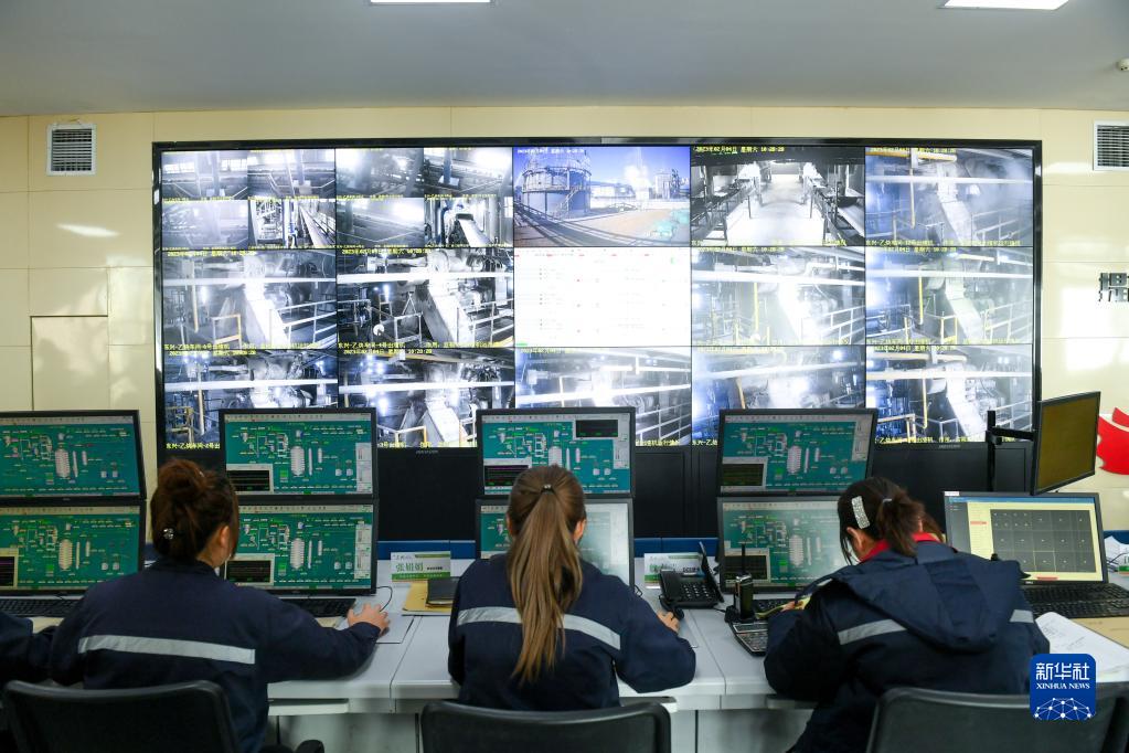 2月4日,在卓资县一家化工企业集控中心,工作人员监测设备运行情况。
