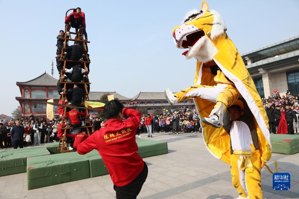 当日,河南省焦作市温县陈家沟村流传数百年的传统民俗节目“陈家沟舞虎”精彩上演,让观众大饱眼福。