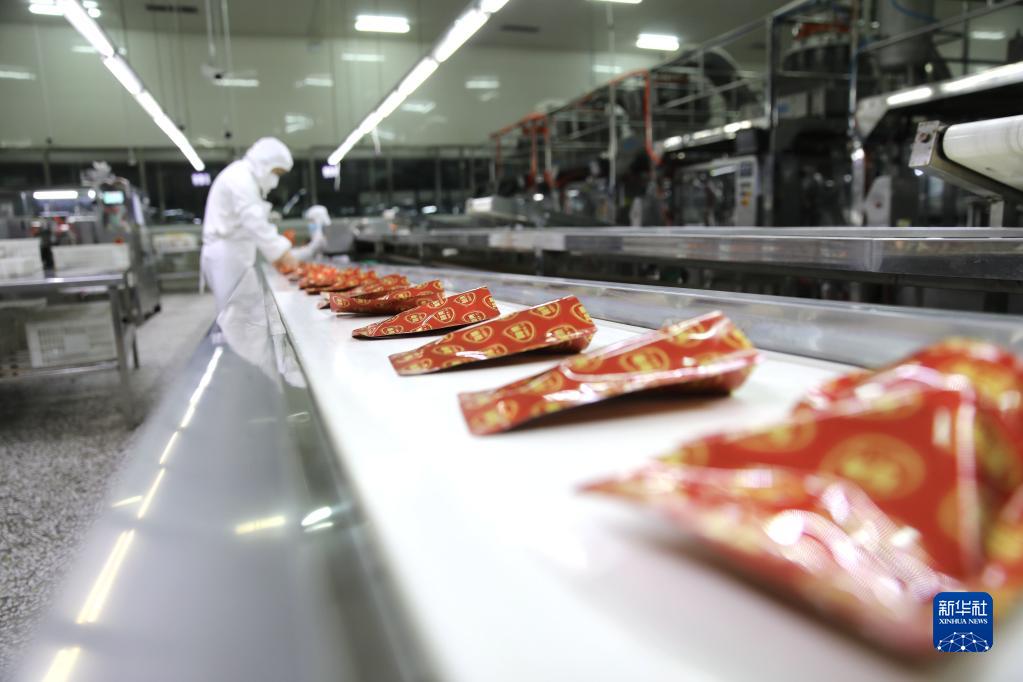 2月4日,在宽城县一家板栗深加工企业,工人在板栗仁包装生产线上忙碌。