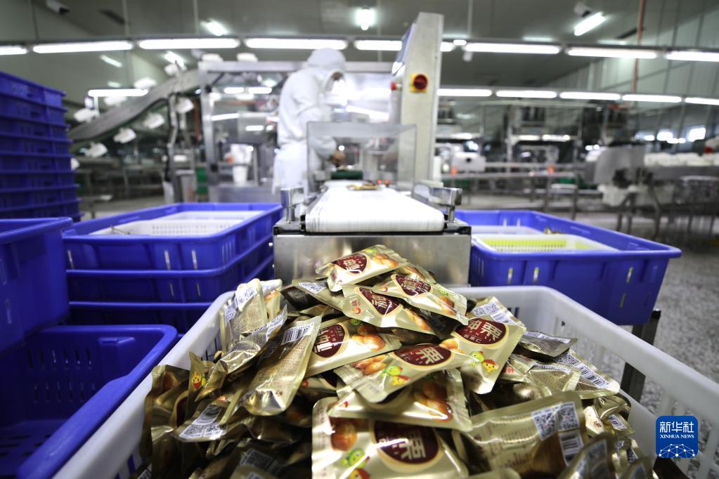 2月4日,在宽城县一家板栗深加工企业,工人在板栗仁包装生产线上忙碌。