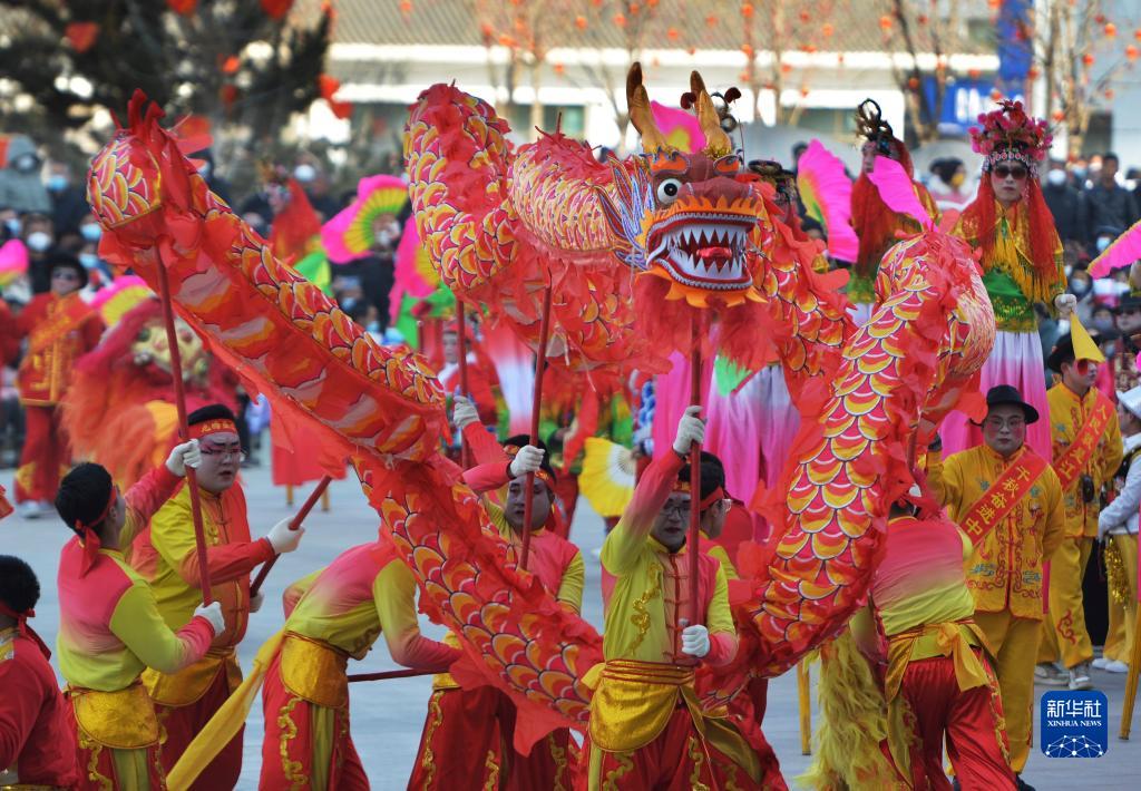 2月3日,甘肃省和政县举行秧歌汇演活动。这是乡村秧歌队在和政县街头表演舞龙。