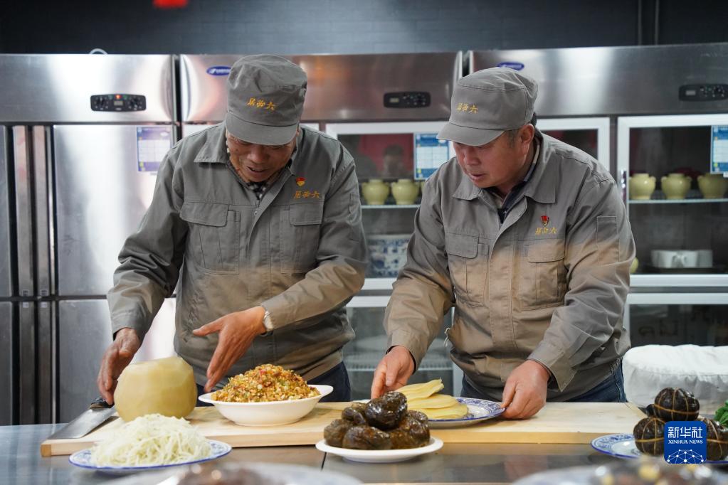 1月31日,酱菜师傅在北京六必居加工车间演示酱菜制作技艺。 新华社记者 魏弘毅 摄