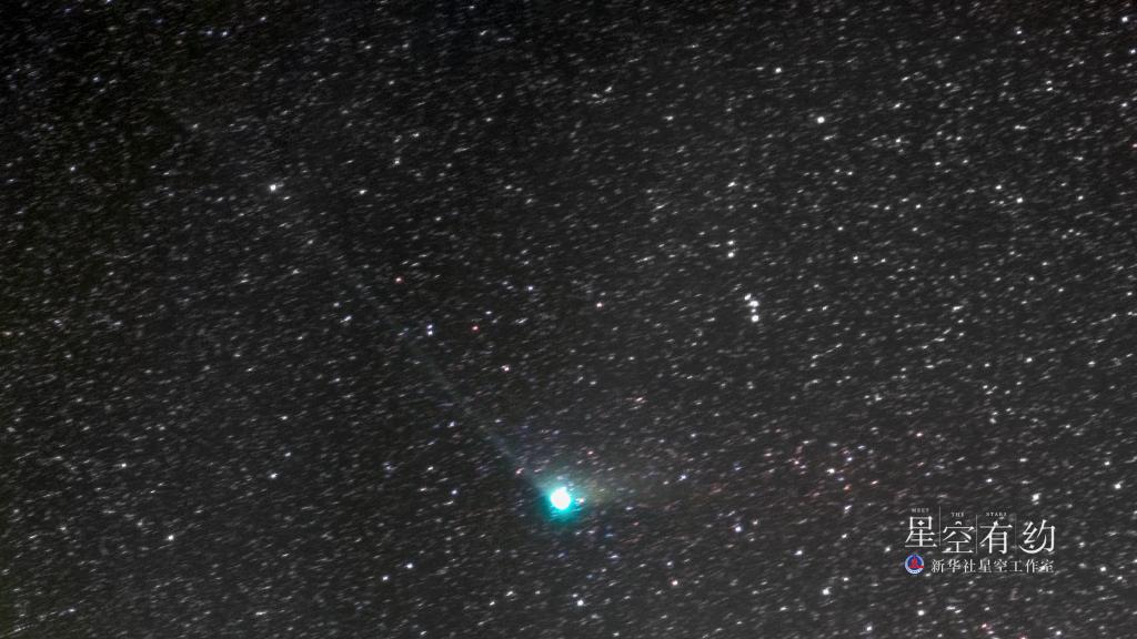 拍摄间隙,杨婧还用双筒望远镜和小型天文望远镜进行了目视观测。“肉眼看到的彗星和拍摄到的画面有着不同的体验,那是一个有着极淡的蓝绿颜色的小光团,在周围恒星的映衬下非常特别。”杨婧说。