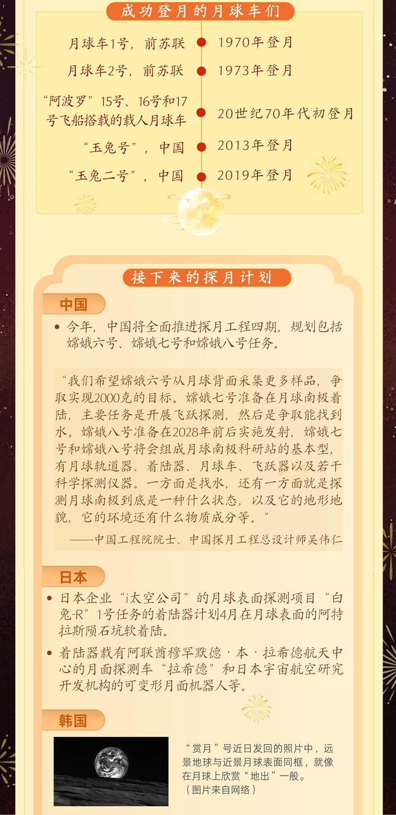 还有多个国家今年将推进月球探索任务。印度“月船3号”探测任务几经推迟后暂定今年发射,再度尝试将着陆器和月球车送往月球南极。俄罗斯也计划今年把“月球25号”探测器送到月球南极勘察水冰资源并验证软着陆技术。它们承载着人类的智慧与好奇,共同为揭示月球的秘密而努力着。(参与记者:宋晨、钱铮、张莹)