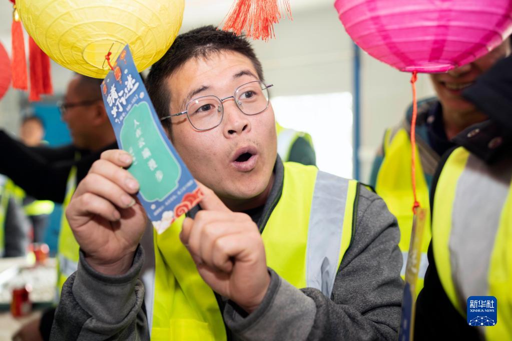 2月5日,在中建三局三公司平顶山项目部,工友在猜灯谜。