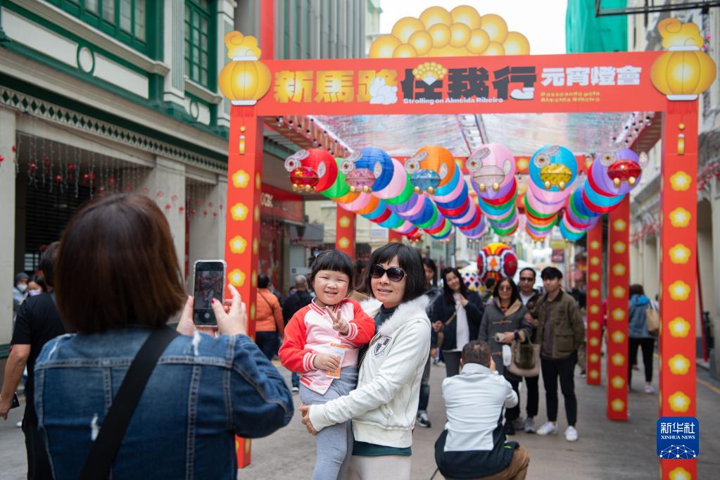 新华社澳门2月5日电(记者李寒芳 刘刚)各色汤圆甜蜜粘牙、玉兔花灯璀璨呈祥……5日,澳门大街小巷喜迎元宵节,为兔年春节庆祝活动画上圆满句号。