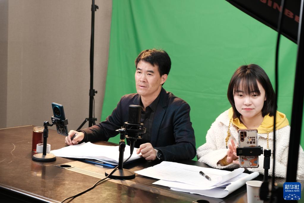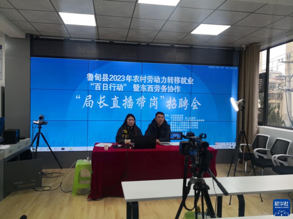 1月27日,云南省鲁甸县人社局局长黄跃伦(右)在参加“局长直播带岗”活动。新华社发(王登柒 摄)