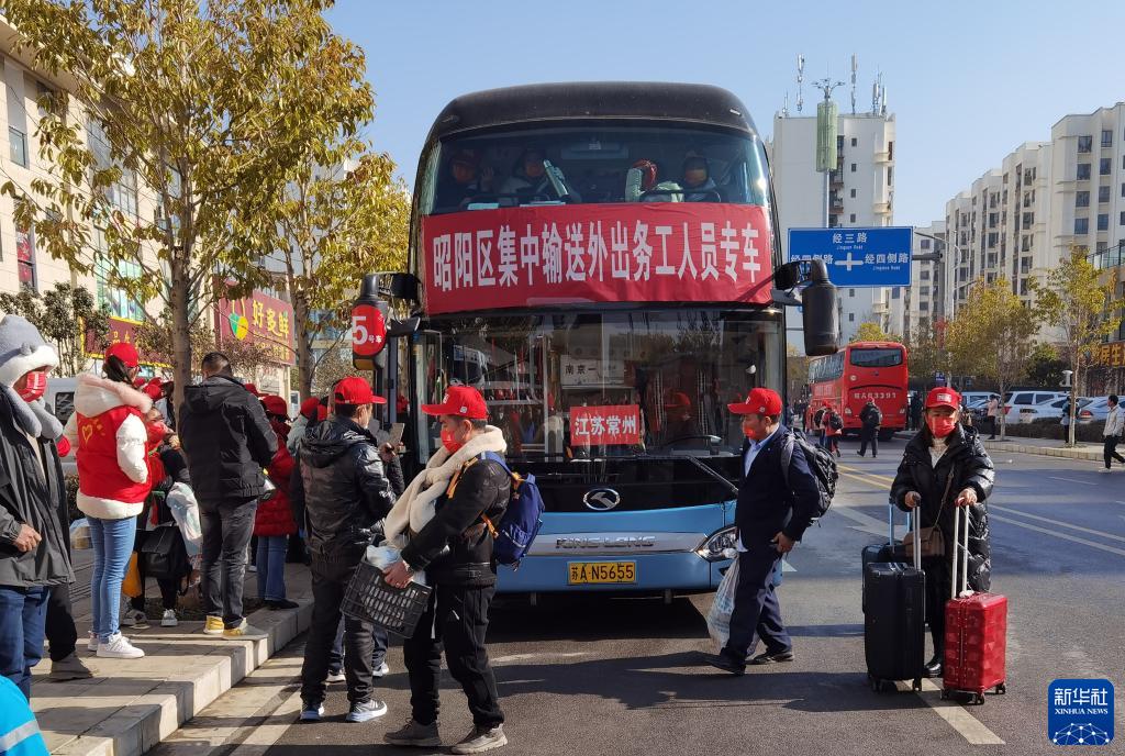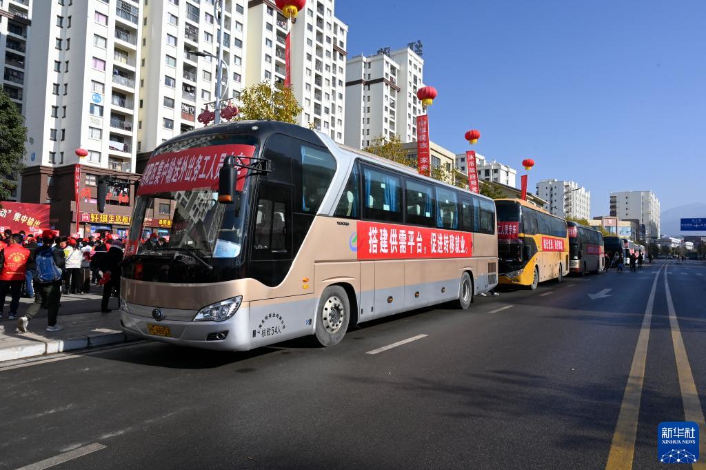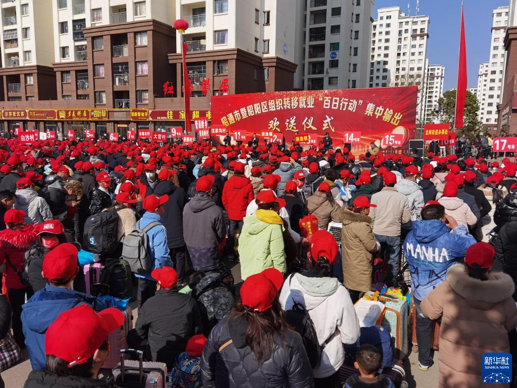 1月29日,云南省昭通市昭阳区开展农村劳动力转移就业集中输送活动。新华社发(龙泉 摄)