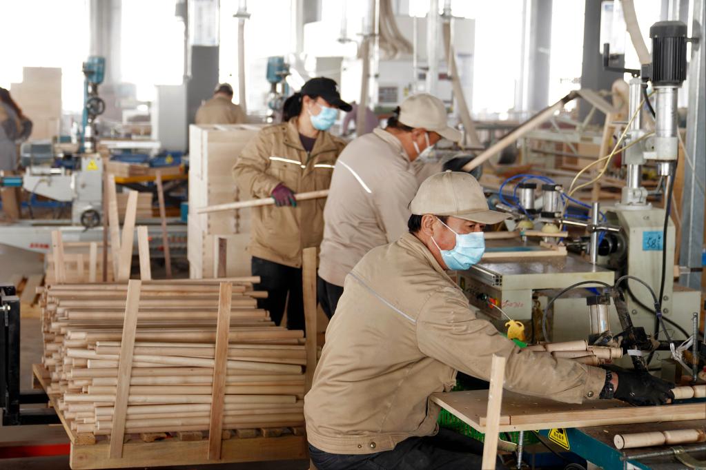 1月15日,在日照京杭林产家具有限公司,工人们在生产线忙碌。(受访者供图)