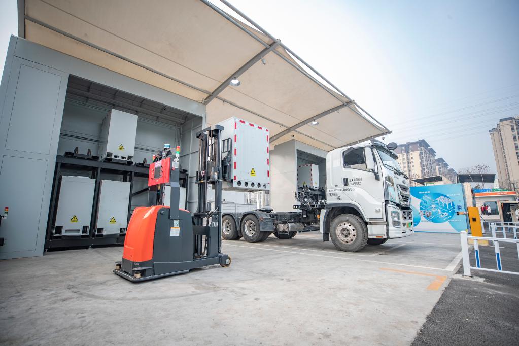 智能换电机器人正为重型卡车换电。(国网重庆市电力公司供图)