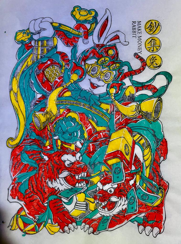 有着同样“负担”的还有杨柳青木版年画代表性传承人、“玉成号”年画坊店主张宏。“游客特别喜欢‘钞集兔’年画。”张宏说,以年画拓印体验必备的红纸为例,“年前预备了两千张,我觉得肯定够了,剩下的纸张还能带到年后的民俗展示项目上去。结果春节假期还没结束,纸就先用没了。”