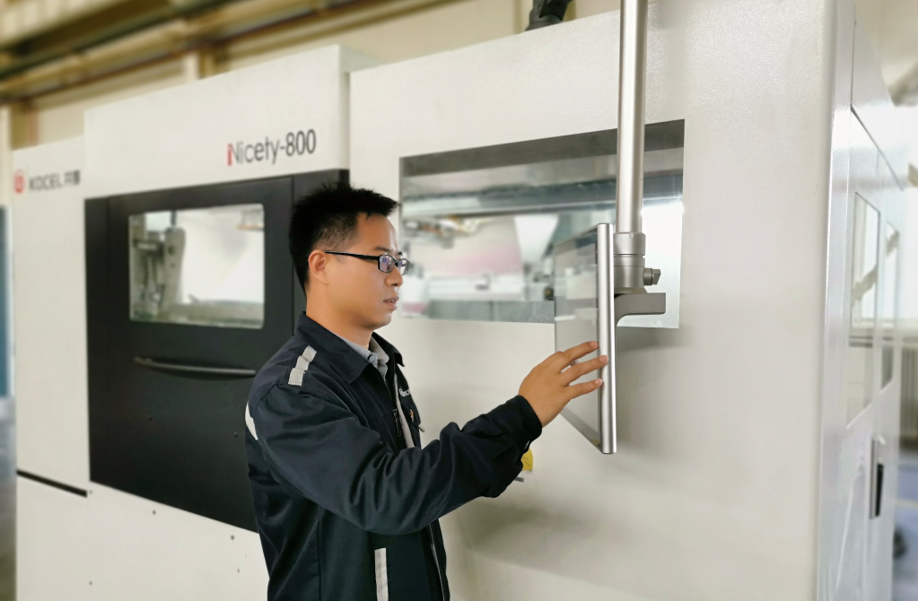 周志军在新研制的3D打印机上开展验证试验。